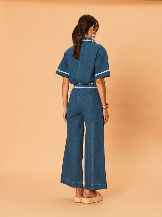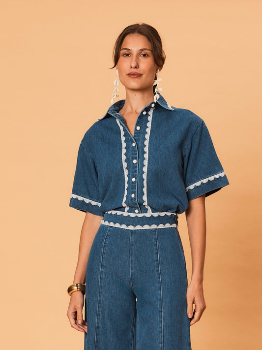 Ellie Denim Shirt - Indigo Lace Trim